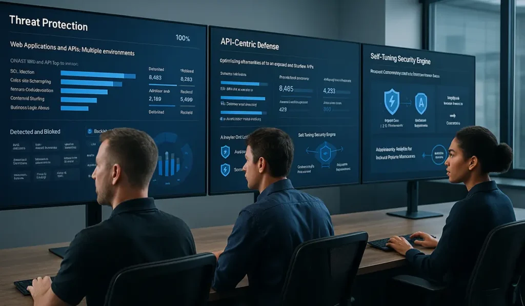 - API‑centric defense with schema validation, sensitive data inspection, adaptive rate limiting, and automated virtual patching for exposed or shadow APIs.
