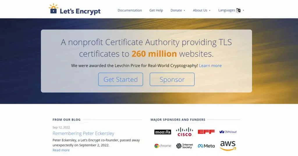 One of the non-profit Certificate Authority that provides TLS certificates to 260 million websites. It provides certificate for free, and is fully automated.