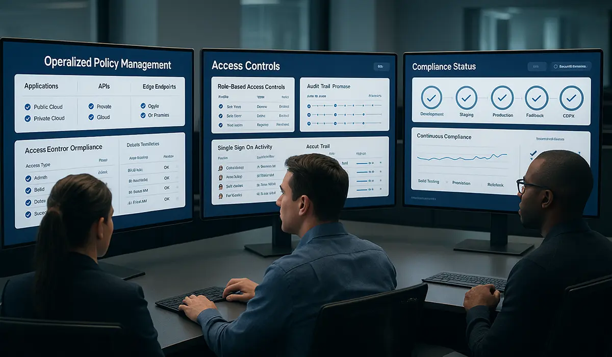 The unified console provides full visibility into traffic, threats, and performance across public and private environments. Built‑in audit trails, continuous reports, and policy versioning simplify compliance with PCI‑DSS, SOC 2, ISO 27001, and GDPR.
