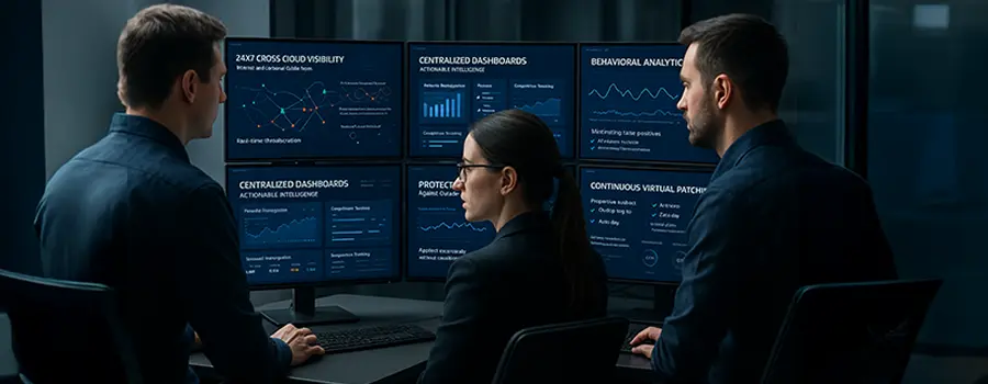 Unified security posture across public, private, and on‑prem workloads through centralized policy management and real‑time visibility.