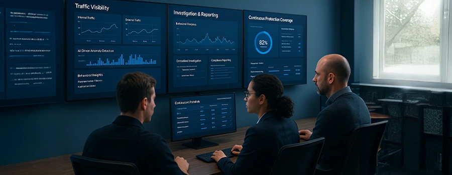 Detects and correlates internal or edge‑originated threats using AI‑driven anomaly detection.