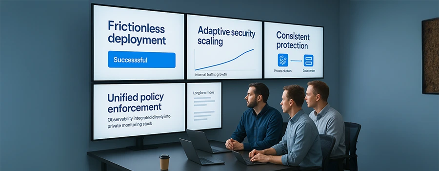 Limited visibility into internal traffic, policy drift, and high maintenance overhead across private clusters.