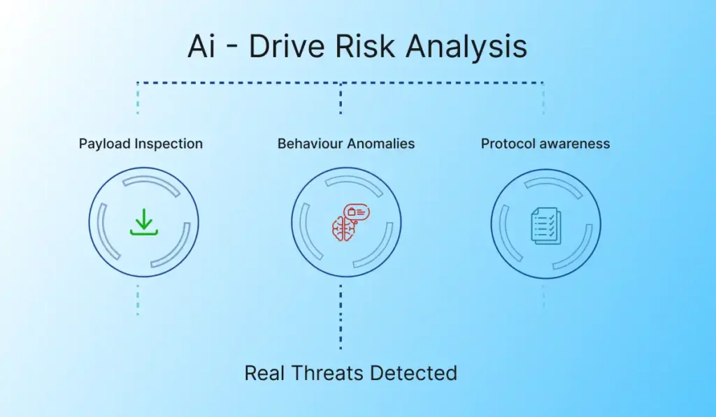 - Evaluate every request using AI-driven risk analysis that combines payload inspection, behavior anomalies, and protocol awareness.